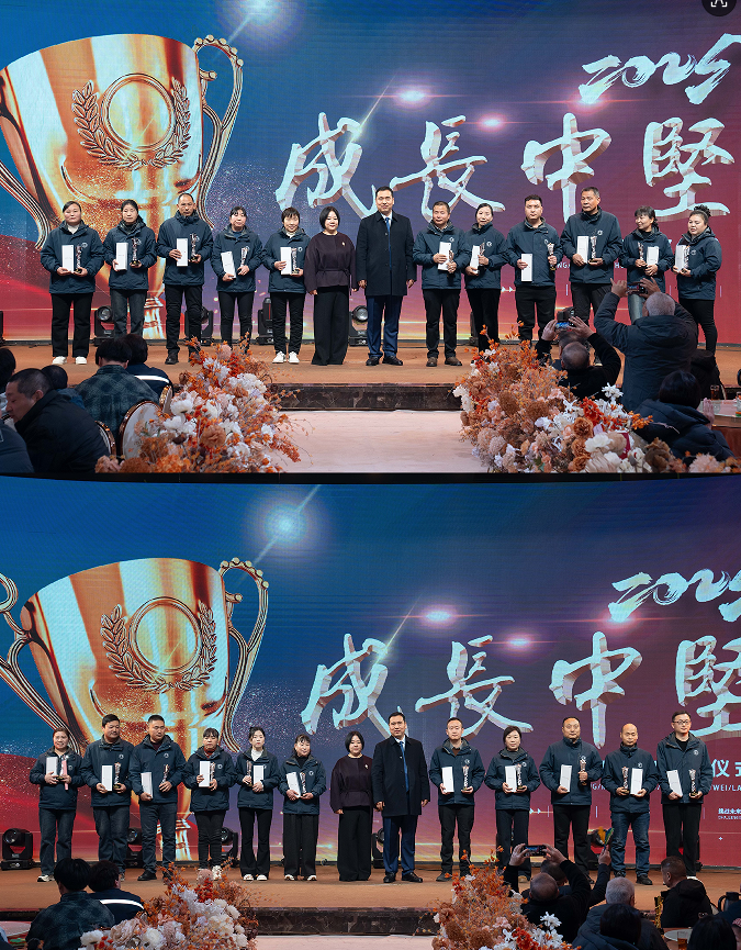 “功勛基石·15年堅(jiān)守獎(jiǎng)”率先揭曉,裝卸員謝紅舉、常務(wù)副總朱文浩等12位老員工獲此殊榮。十五載春秋流轉(zhuǎn),他們與恒銘風(fēng)雨同舟、不離不棄,將最寶貴的青春年華奉獻(xiàn)給恒銘,用日復(fù)一日的堅(jiān)守,筑牢企業(yè)發(fā)展的堅(jiān)實(shí)根基。緊隨其后,“成長(zhǎng)中堅(jiān)·10年深耕獎(jiǎng)”隆重揭曉,劉俊蘋(píng)、張小娟等22位員工憑借十年深耕和初心不改,成為企業(yè)發(fā)展的核心力量。董事長(zhǎng)和夫人親自上臺(tái)頒獎(jiǎng),與獲獎(jiǎng)員工合影留念。老員工代表李三衛(wèi)、夫妻員工代表?xiàng)顡嵝蕖?/span>10年員工代表曹雪霞先后發(fā)言,字里行間滿是對(duì)恒銘的深情與眷戀,真摯的分享打動(dòng)了在場(chǎng)每一個(gè)人。